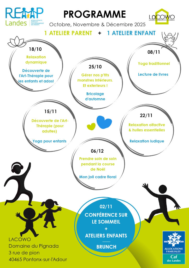 Le REAAP vous propose une après-midi conviviale et enrichissante, placée sous le signe du bien-être et du partage en famille. Au programme de 14h à 16h :